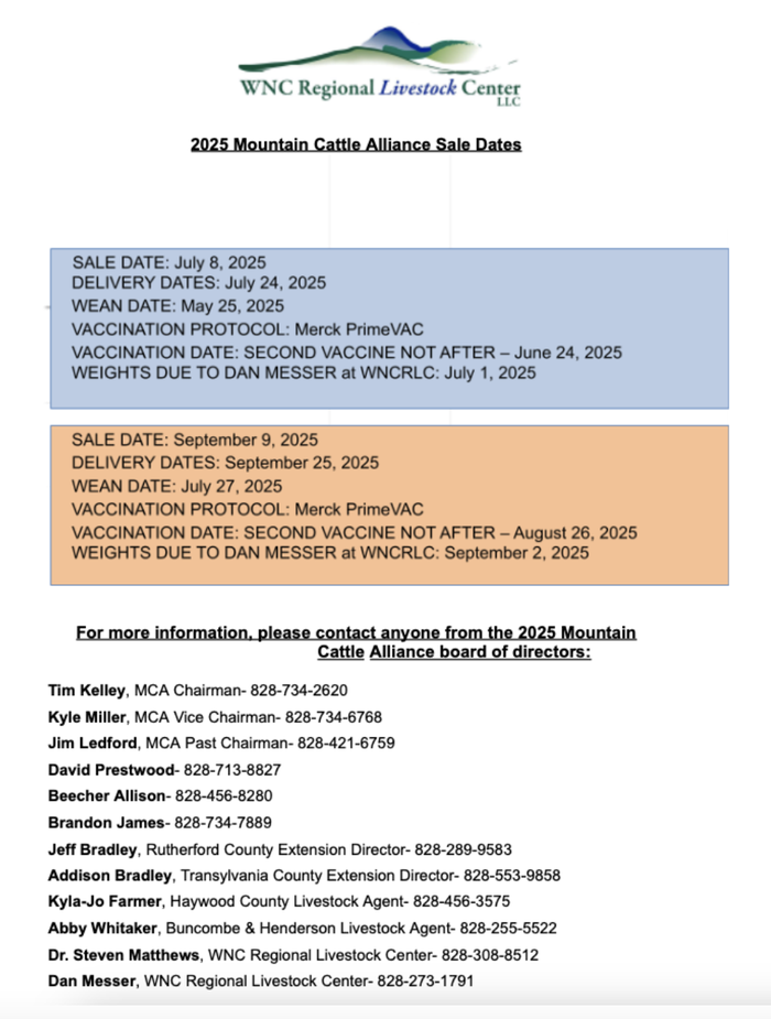 - Dan Messer, WNC Regional Livestock Center – 828-273-1791
