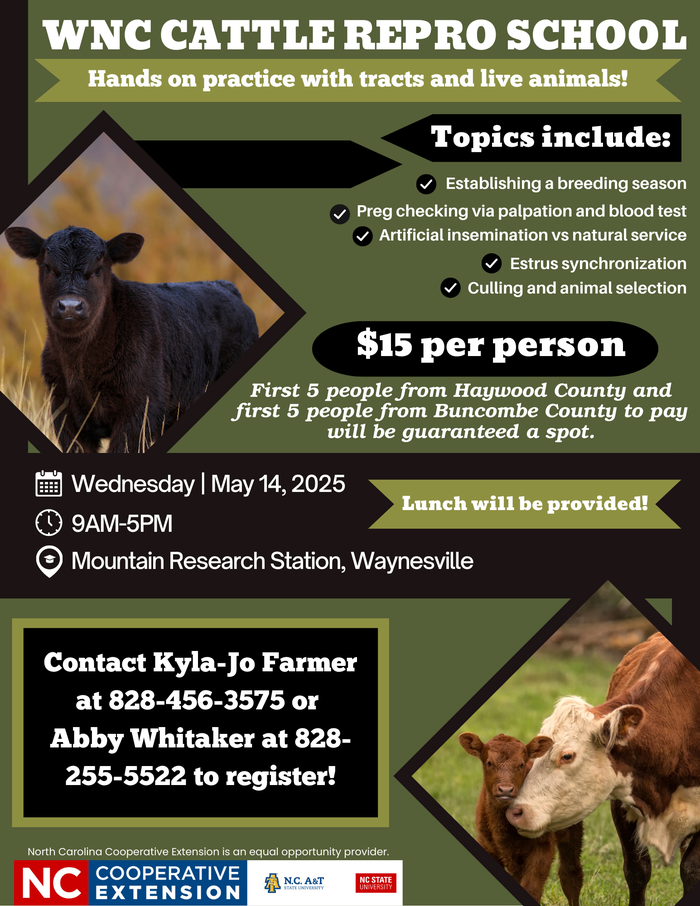 Contact Kyla-Jo Farmer at 828-456-3575 or Abby Whitaker at 828-255-5522 to register!N.C. Cooperative Extension